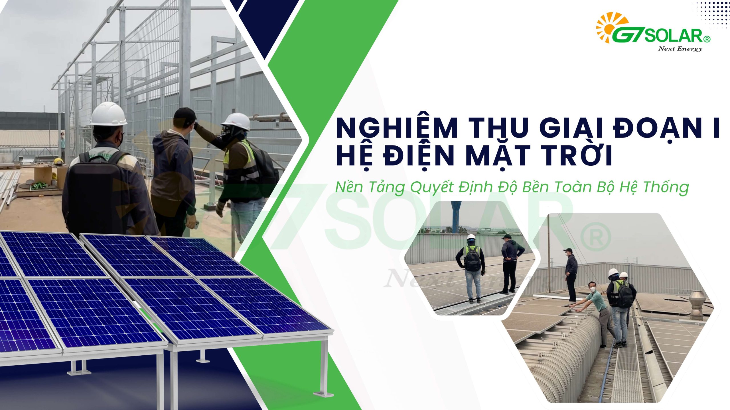 Đó chính là nghiệm thu giai đoạn 1 – nghiệm thu phần cơ khí và kết cấu nền tảng. Tại các dự án do G7 Solar triển khai, đây luôn là một mốc bắt buộc trước khi chuyển sang các bước tiếp theo.